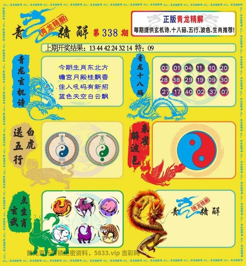 | 337期⑤肖 | 鸡龙狗兔鼠 | 开:鸡09中 |